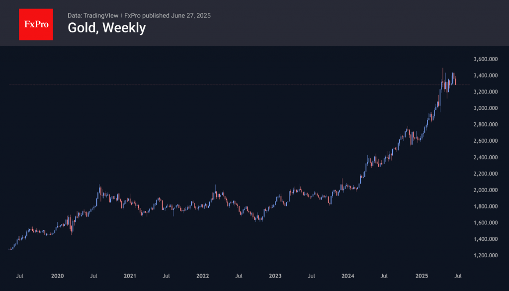 イスラエルとイランの停戦は、安全な資産としての金の需要を減らしました。貴重な金属は、トロイオンスあたり3,100〜3,400ドルの中期統合範囲から抜け落ち、その上昇傾向を再開しませんでした。これは雄牛の弱点を示しており、シティグループは2026年に3,000ドル未満の価格の下落を予測できるようにします。銀行によると、ドナルド・トランプの「大きくて美しい」税法案のおかげで、米国経済の加速により金価格が押し下げられます。地政学的リスクの減少は、金の減少にも寄与します。